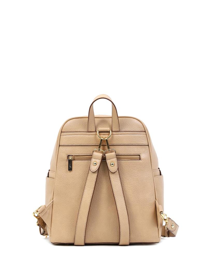 Дамска раница в бежово с бродирано лого. Изработена от еко кожа. Предлага се със защитна торбичка за прах.