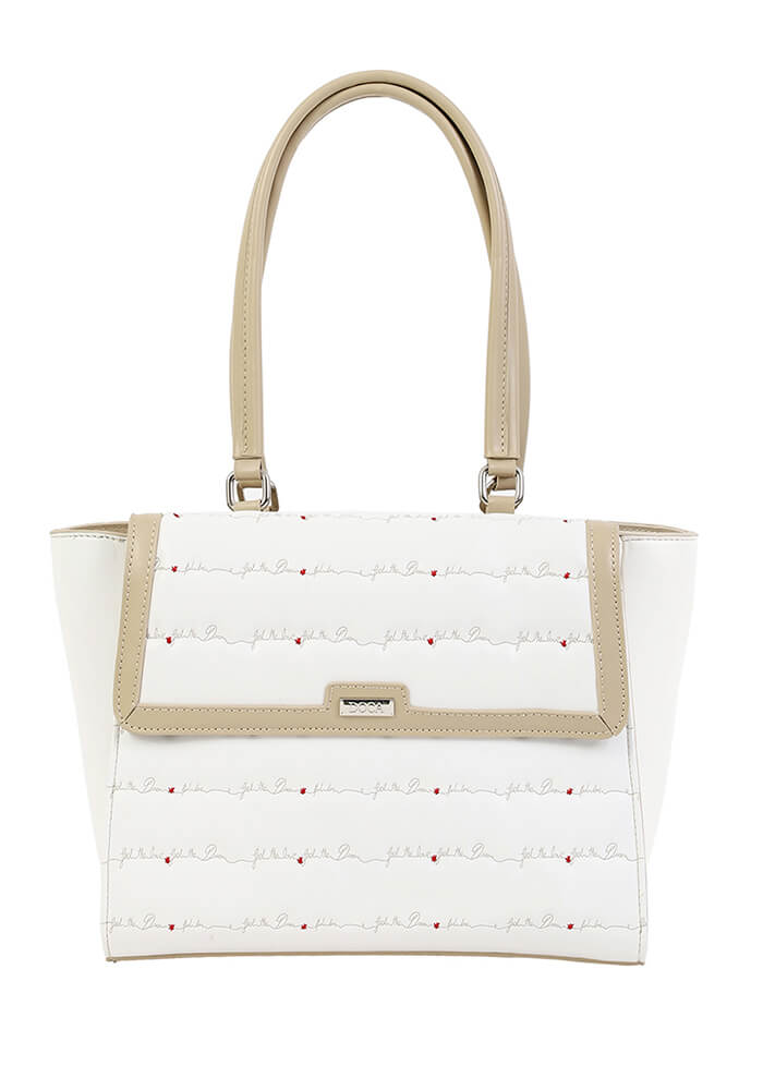 Ежедневна дамска чанта в бял цвят и бродерия.