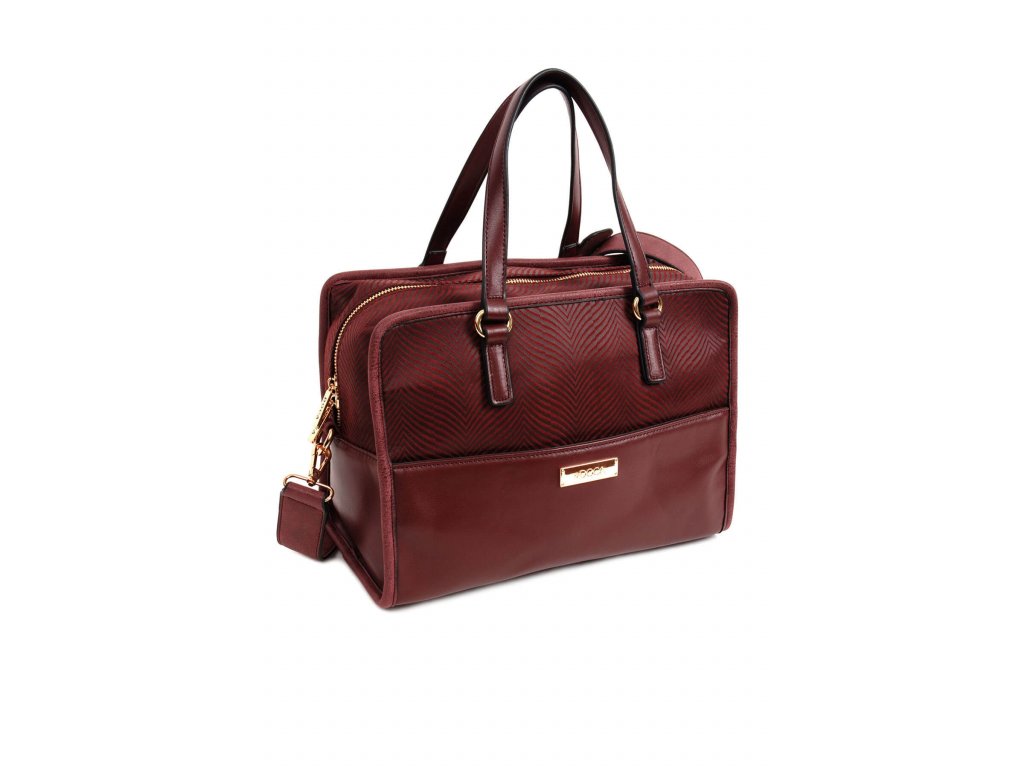 Дамска чанта в бордо ,подходяща за носене в ръка, но също и на рамо.