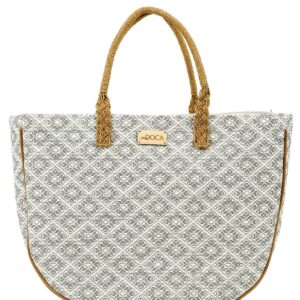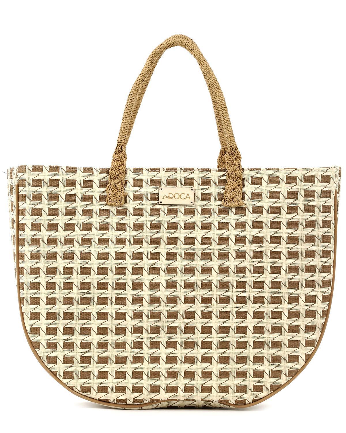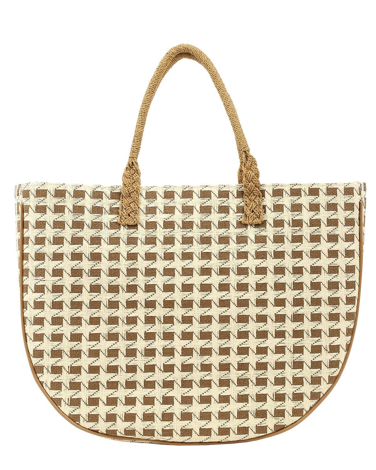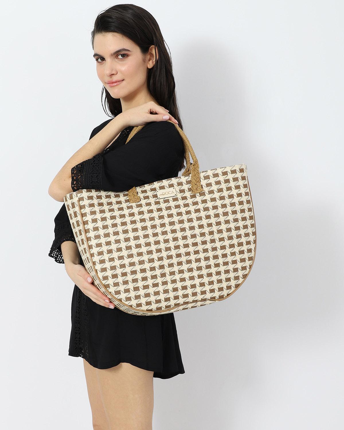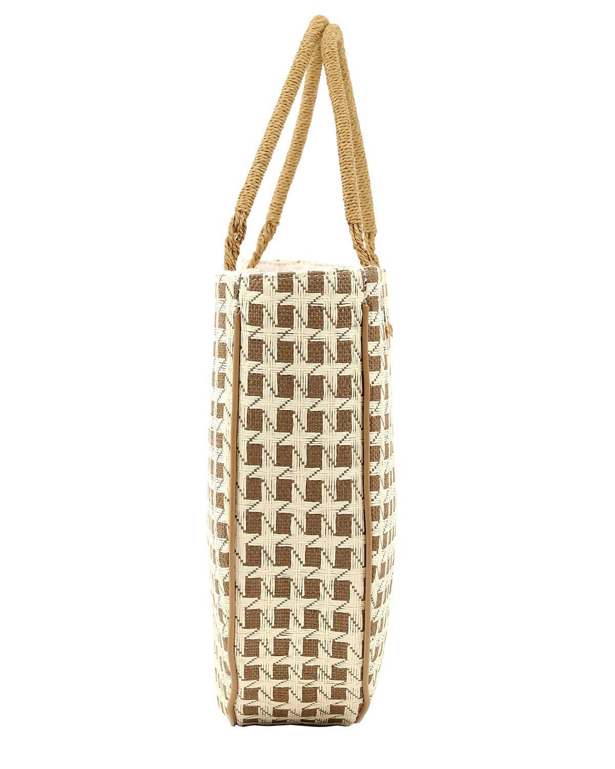 Хартиена сламена чанта за плаж в кафяво с декоративни детайли. Изработена от 100% сламена хартия.